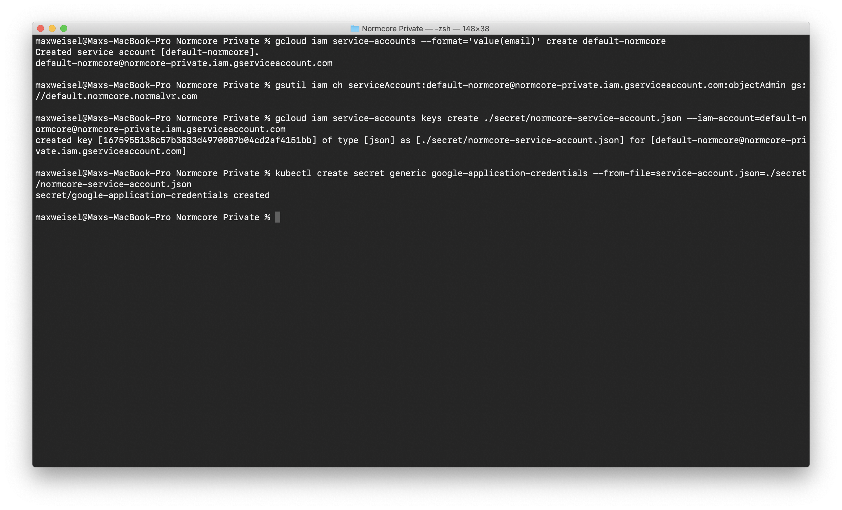 gcloud iam service-accounts keys create ./secret/normcore-service-account.json --iam-account=<SERVICE ACCOUNT EMAIL>