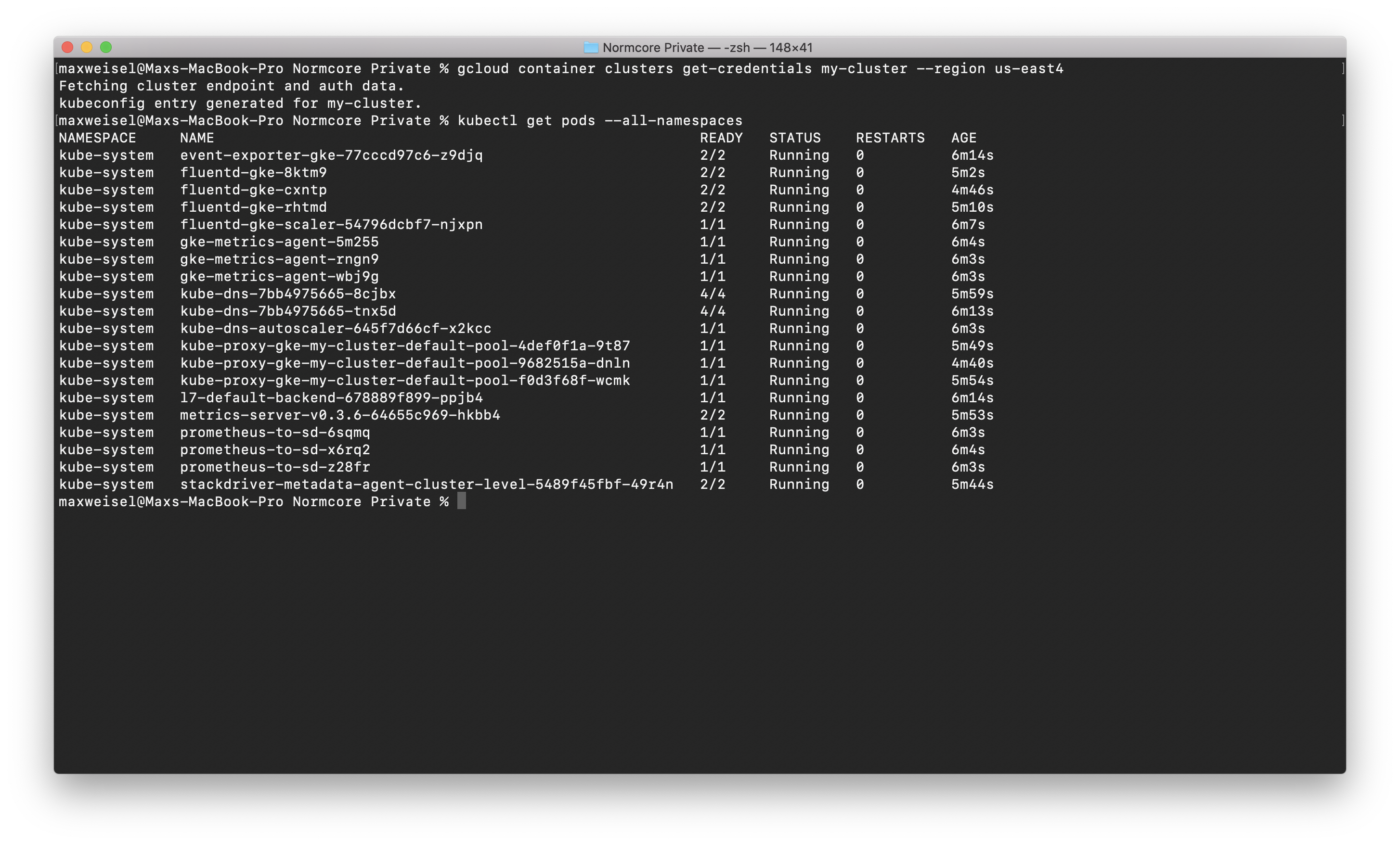 Once that's done, you can test everything out by getting a list of all running pods via kubectl: