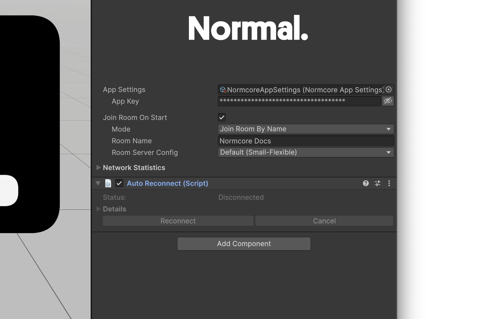 Normcore includes an optional AutoReconnect UI prefab (pictured above) that integrates with AutoReconnect.